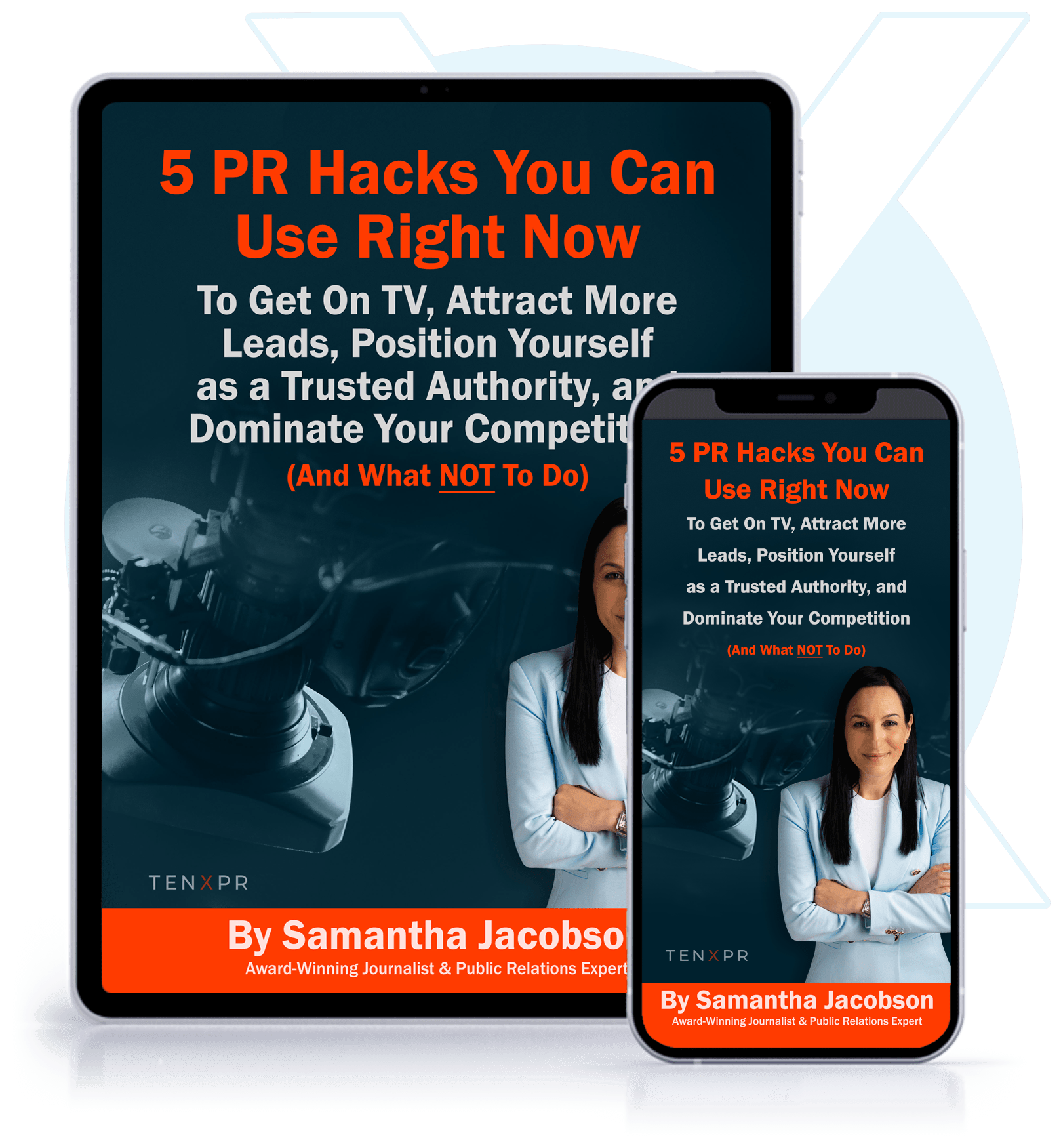 Click the red button below to get INSTANT access your FREE eBook and start implementing the 5 PR Hacks to book more media appearances so you can increase your exposure, elevate your brand, and TENX your business growth!